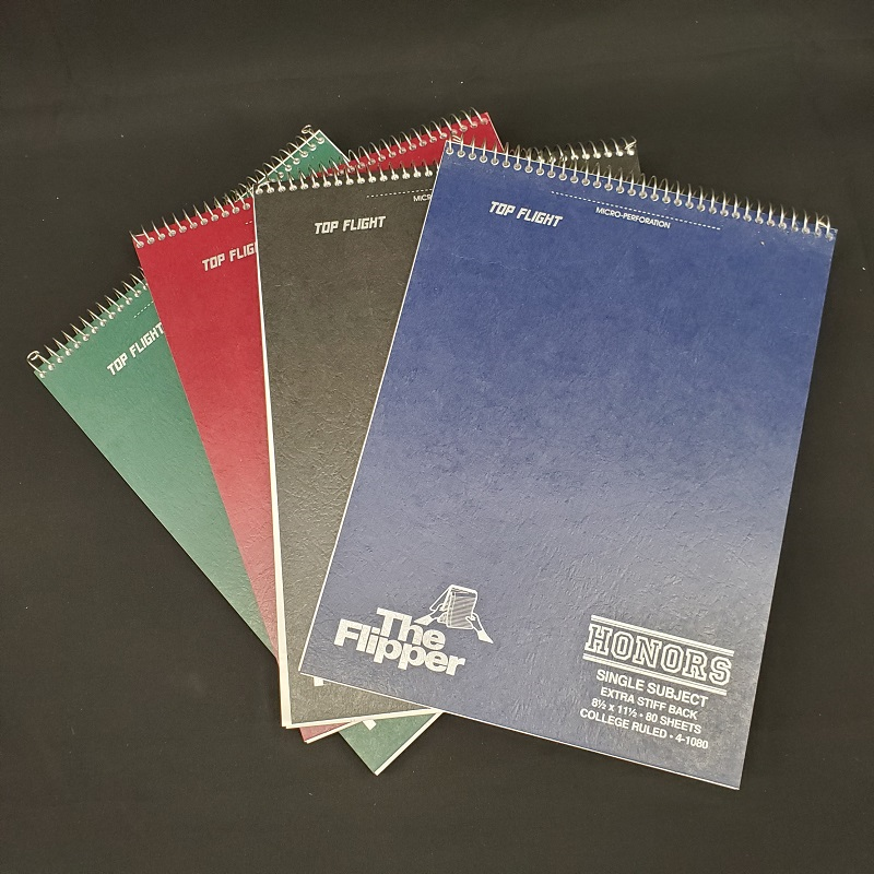 Assorted color single-subject flipper notebook. College Ruled, 80 sheets