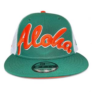 Fitted 9Fifty Aloha Kelly Green Orange Script Trucker Hat