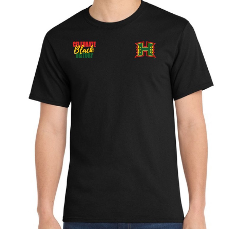 Celebrate Black History Month with this exclusive UH Black History Month tee! Decorated in Red, Yellow, Green kente colors and the UH Manoa's Black Student Associate logo on the back for this collab